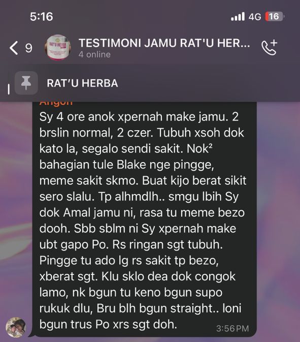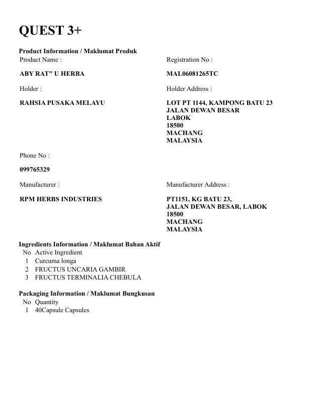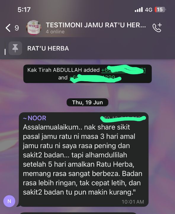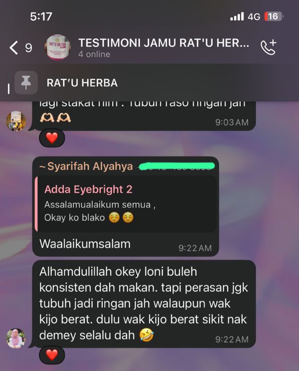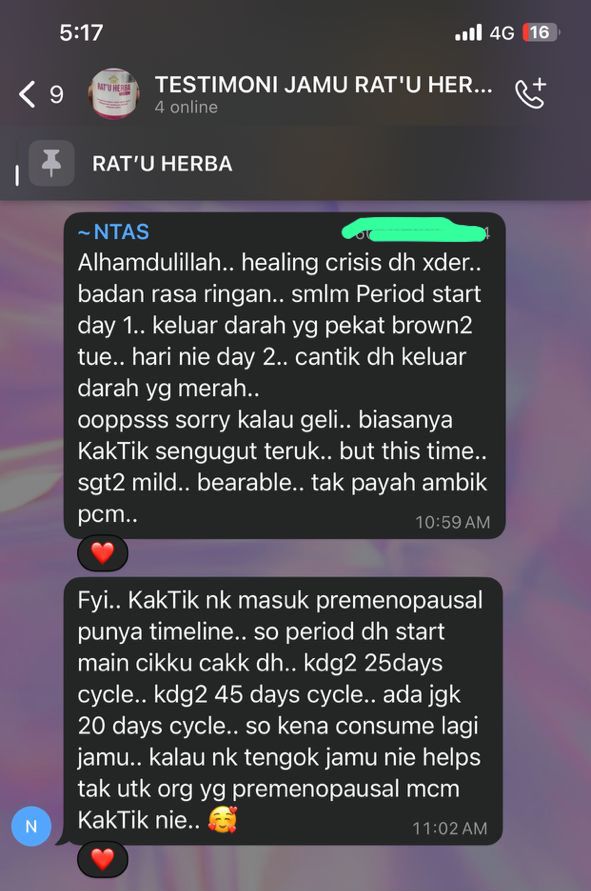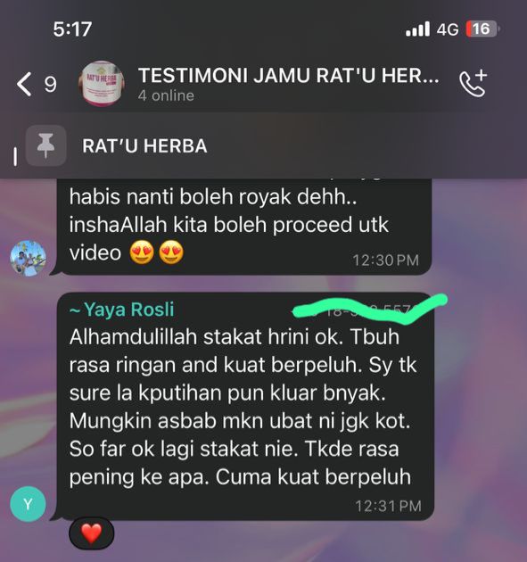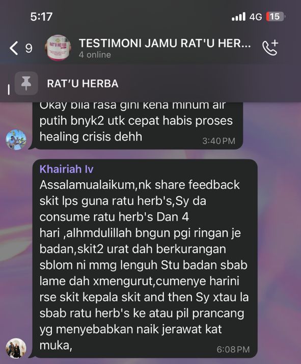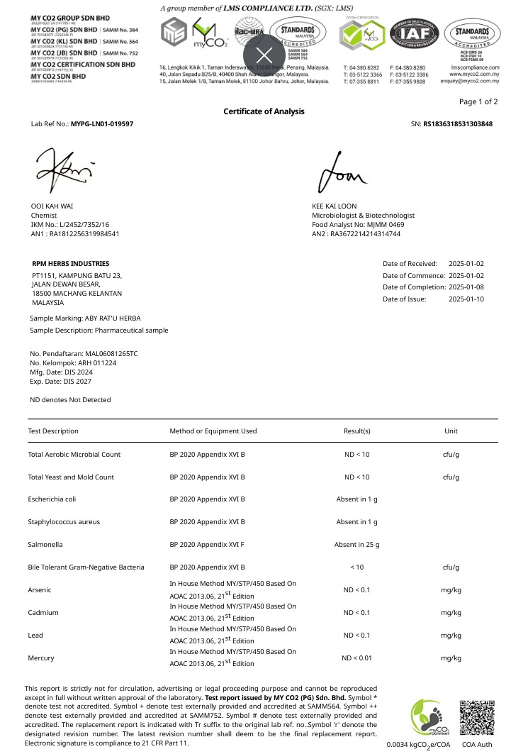 Banyak lagi testimoni yang kami dapat berikan untuk membuktikan keberkesanan pengambilan RAT’U HERBA secara konsisten ini.